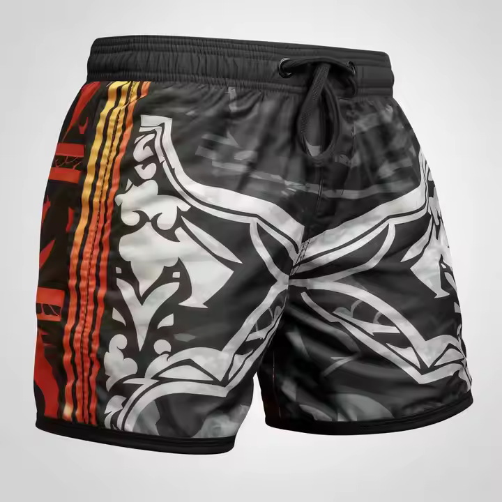 MMA Shorts made of 100% polyester stretchable micro fabric. Waistband with interlocking drawstring for extra grip and fitting. Unique closure system consists of a non-abrasive velcro over the lacing for a better fit. Multiple flex panels for extra mobility. Split seams for superior flexibility. T3 stitching ultimate strength and durability.