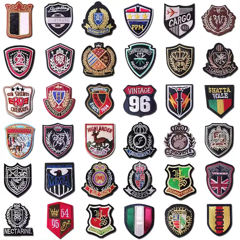 Various embroidered  items , including emblems , patches , appliques and motifs