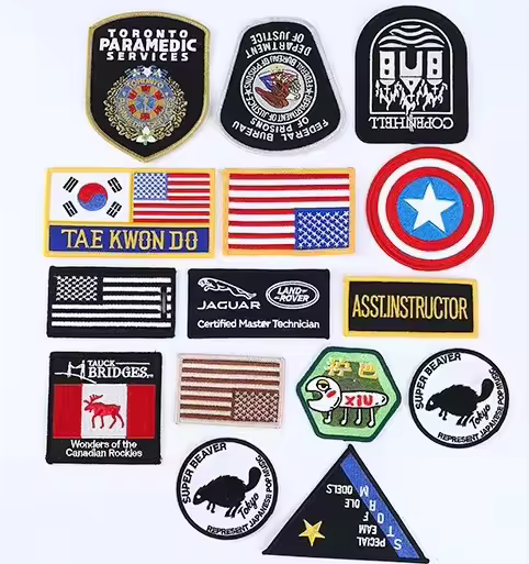 Various embroidered  items , including emblems , patches , appliques and motifs